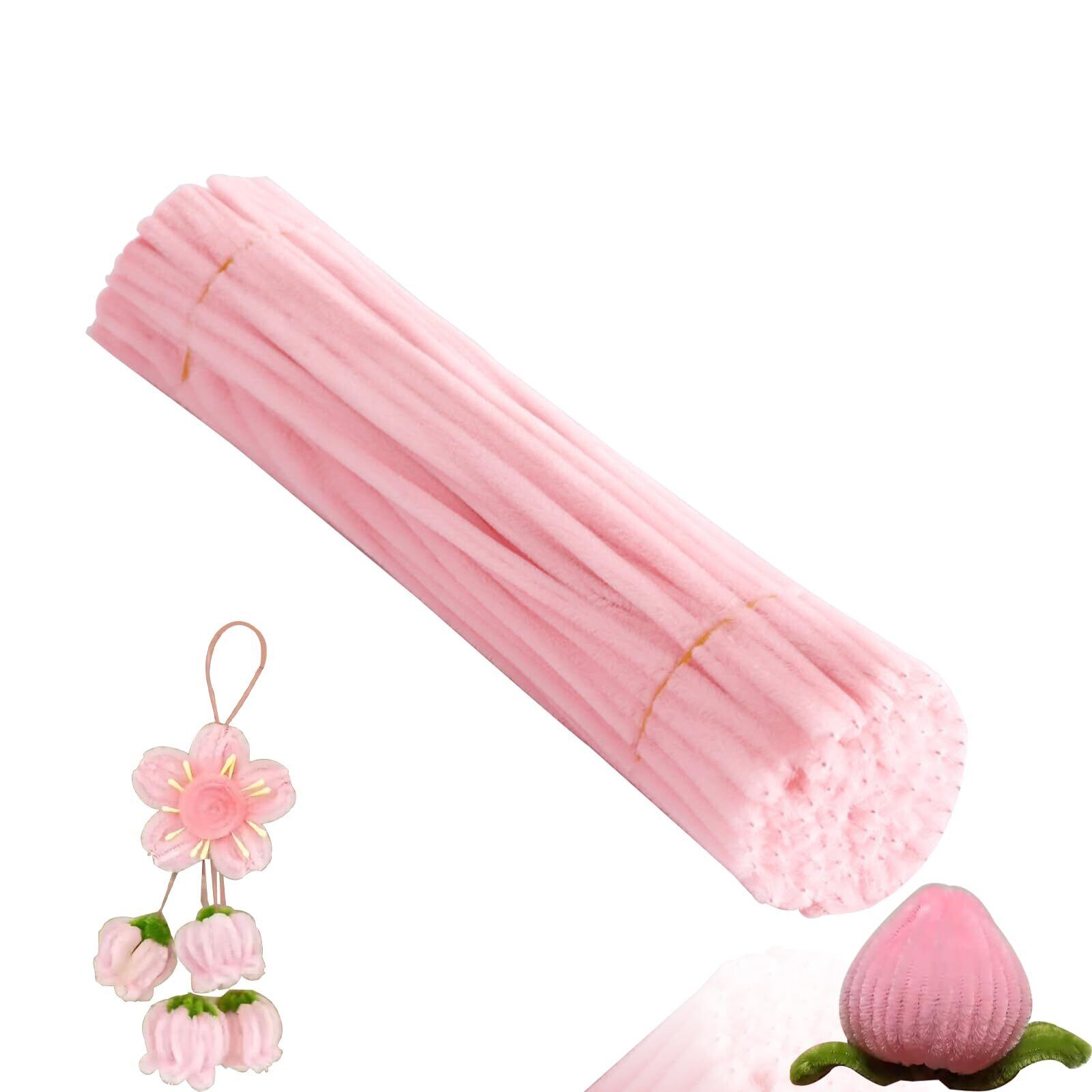 FineGood 手芸モール 100本 6mm 単色 カラーモール 高密度モール 花 フラワー ワイヤー 骨格 アート DIY 飾り物 造形材料 学校 手作り素材 手芸 用品 曲げ可能 骨格モール DIY 飾り物 造形材料 工作モール ((うすいピンク))