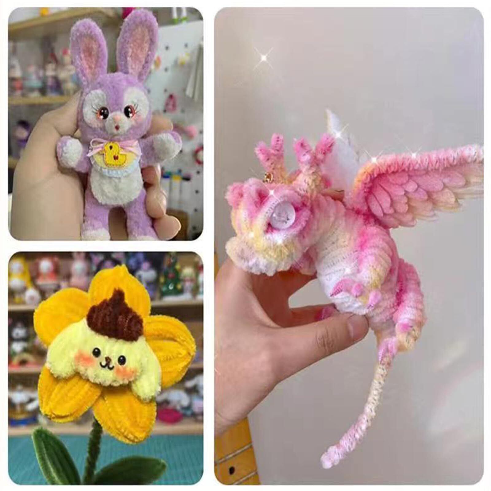 【商品仕様】ぬいぐるみクラフトモール、材質:フェイクラビットファーフェザー、アルミワイヤー。 パッケージ:単色DIYが好きな大人と子供用!