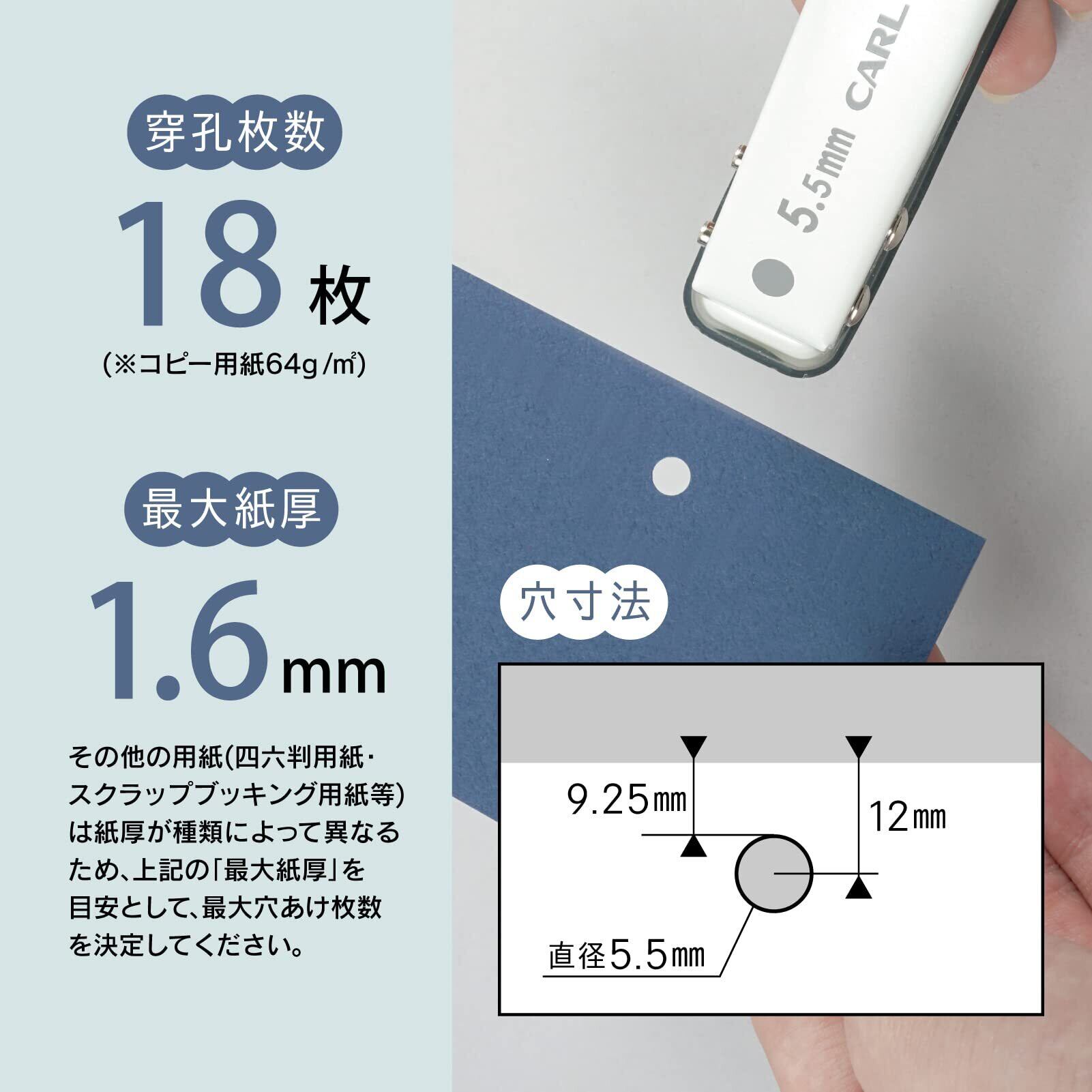 穴あけパンチ 1穴 穴径5.5mm 18枚 ホワイト
