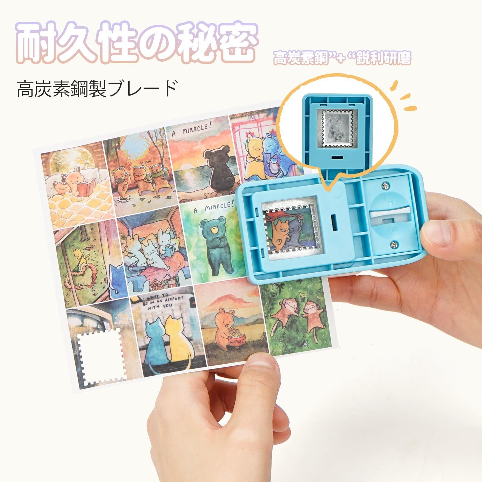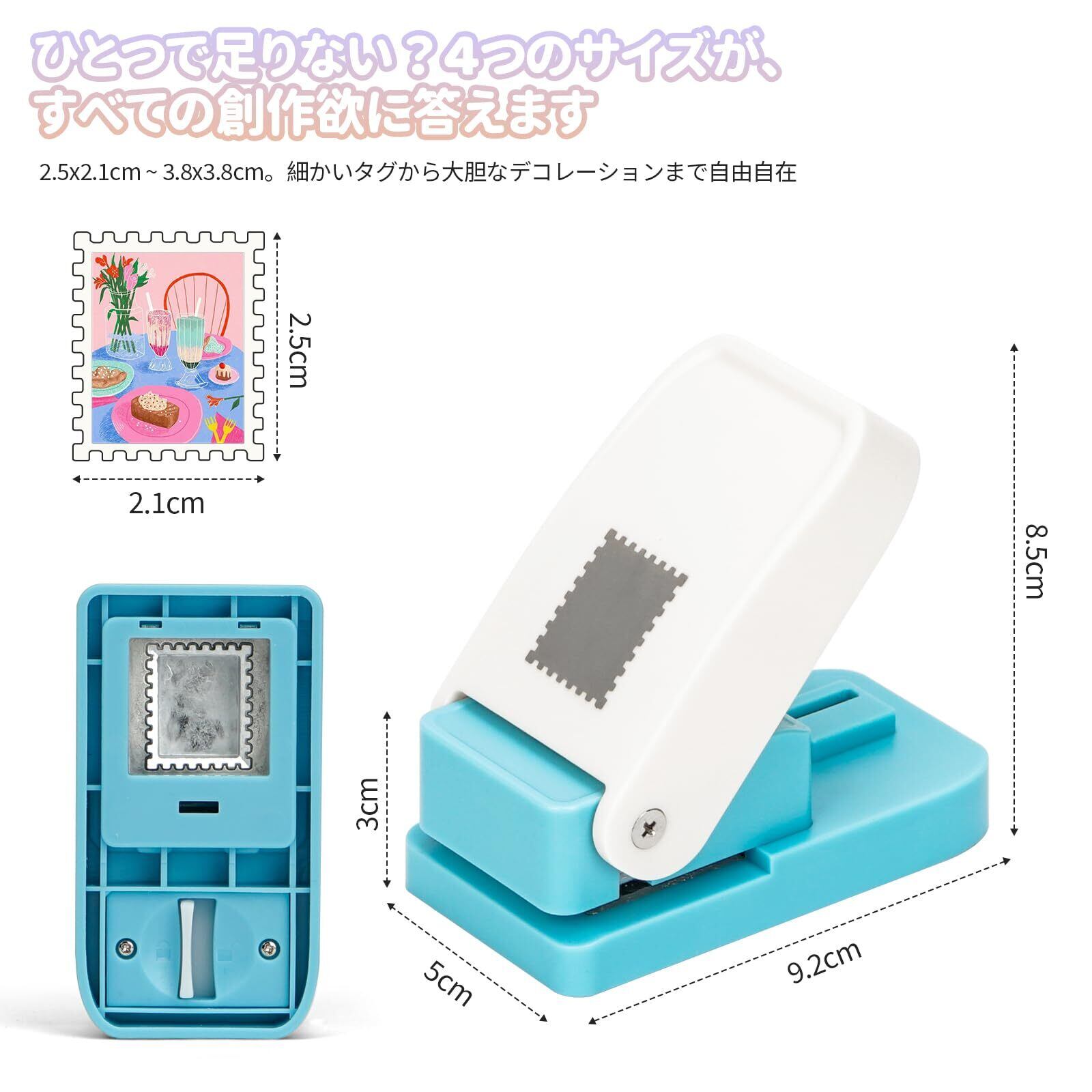 クラフトパンチ 切手 パンチ 穴あけ 約2.5×2.1cm 長方形 ペーパークラフト エンボスパンチ 手帳デコ DIY 郵便 子供も使える 軽い力で簡単操作 封筒 収納便利 押しやすい 型抜き クラフト・スクラップブッキング・カード作り用 学校 幼稚園 手芸用品 切手風