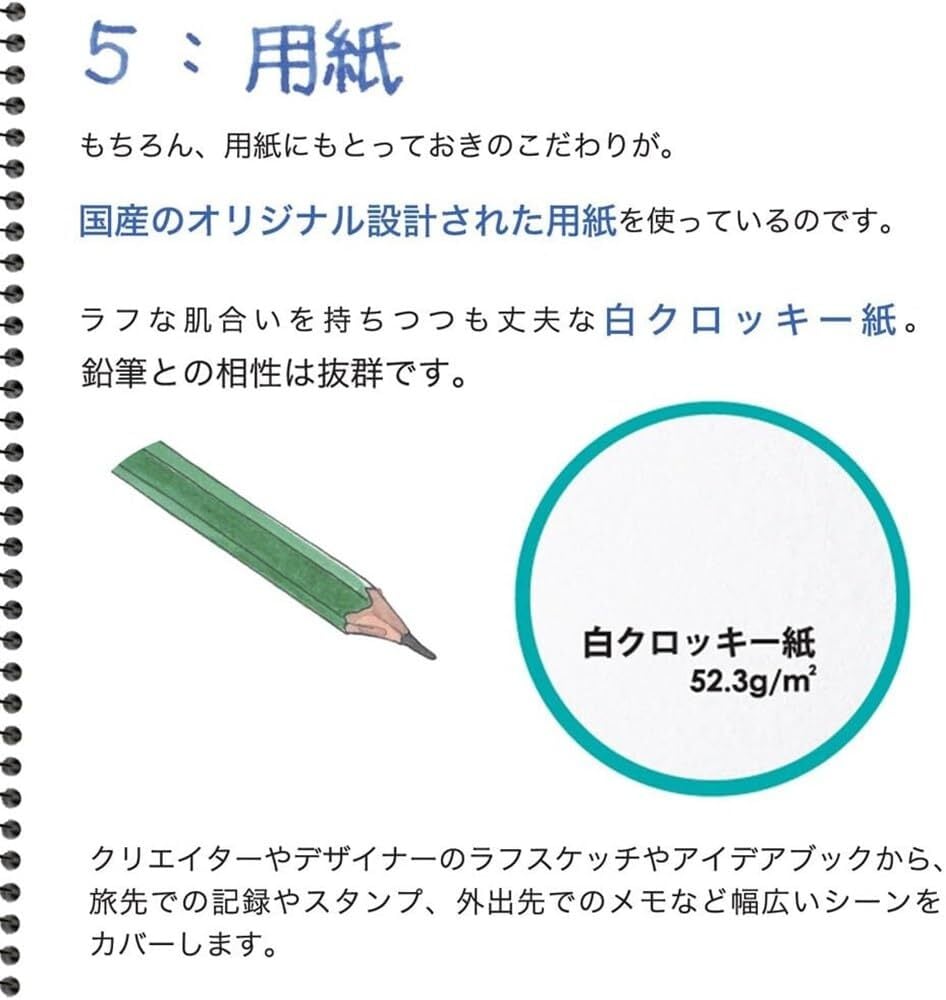 白クロッキー紙は鉛筆と相性が抜群。鉛筆の線が乗りやすいため、風景画や人物画のラフスケッチだけでなく、図形もかけるメモ帳としてもおすすめ。