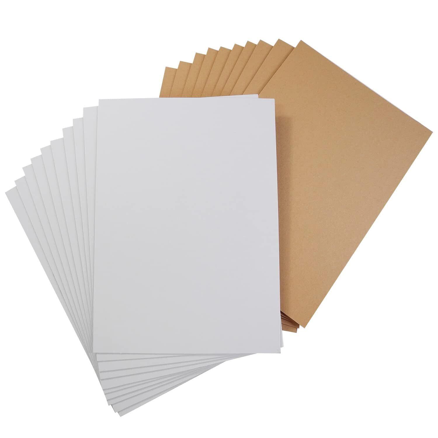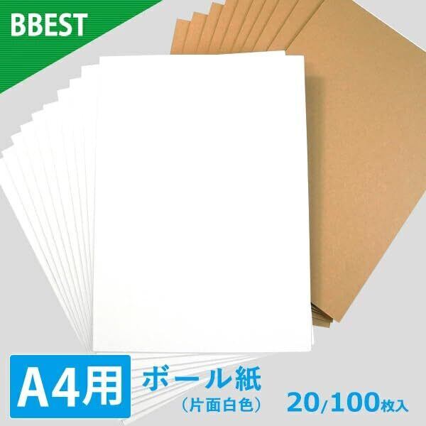 BBEST ボール紙 A4用 300x213mm 20枚入り (表:白 裏:茶色) 厚1mm 厚紙 台紙 梱包 補強 表紙 封筒 クラフト紙 裁断用サイズガイド付