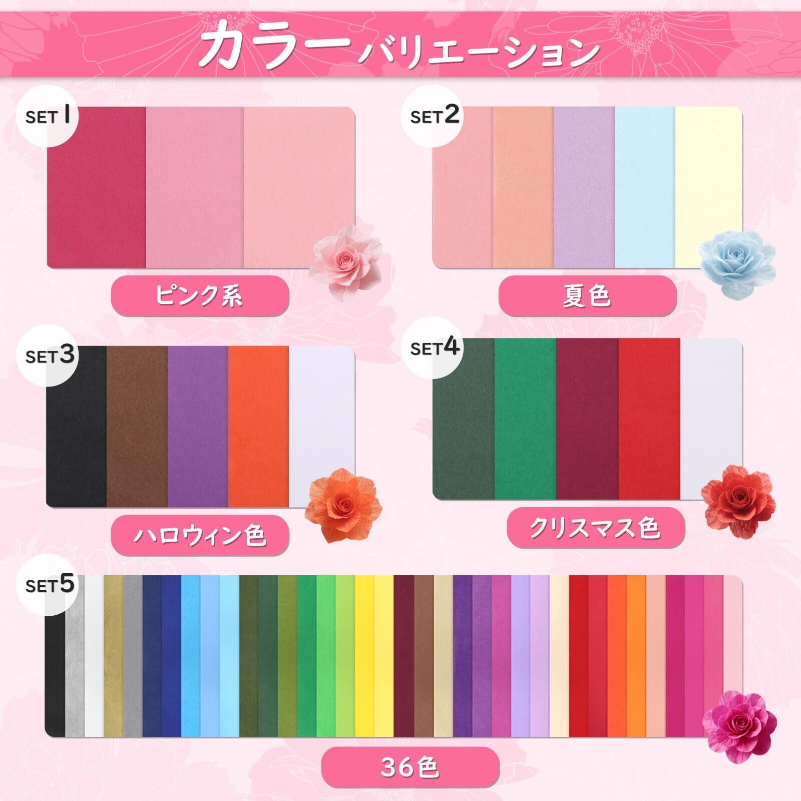 【入数】300枚(3色、各色100枚入り)、たくさんのペーパーフラワー作りにピッタリ!