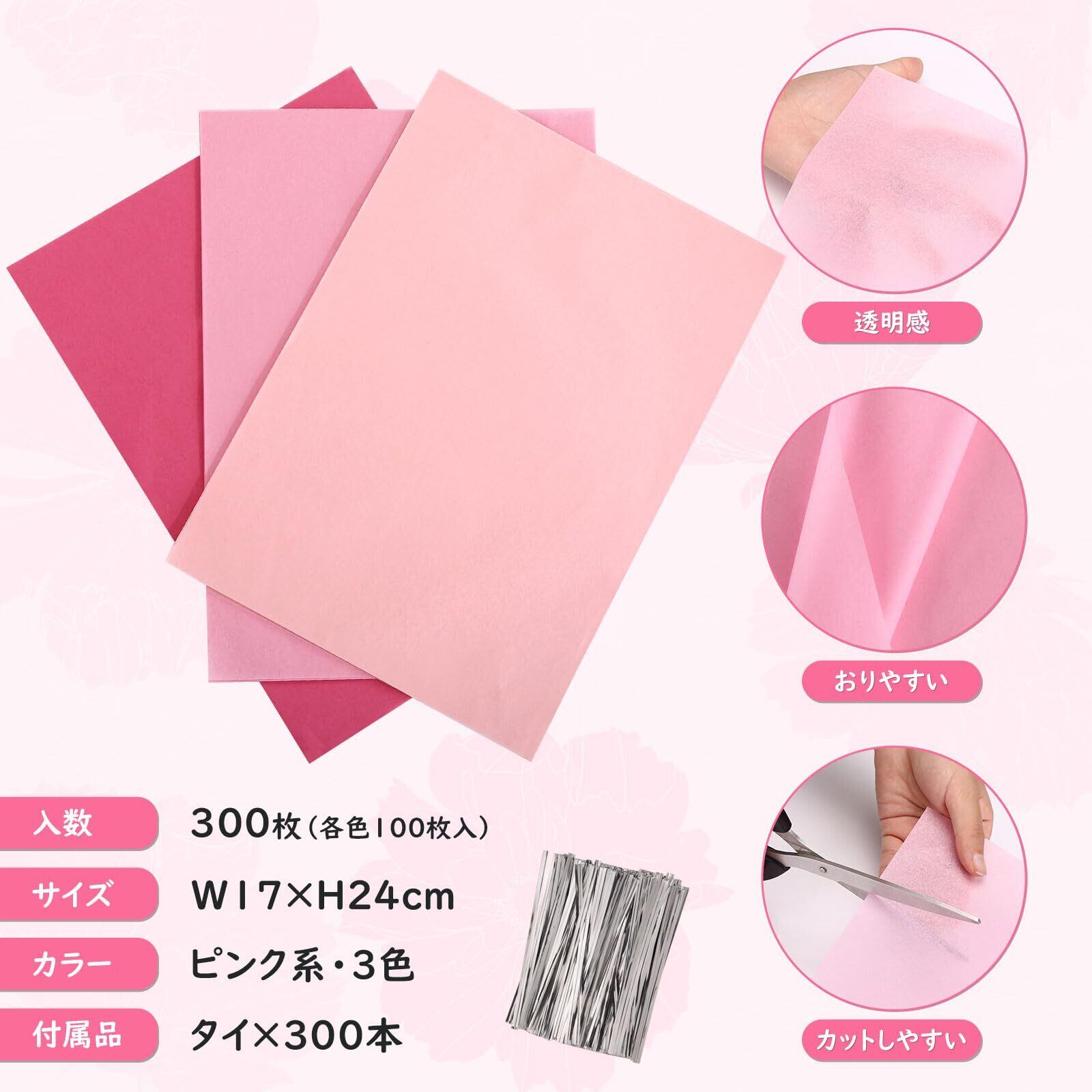 kesote おはながみ お花紙 ピンク系 3色 300枚 フラワーペーパー ペーパーフラワー 紙 17×24cm