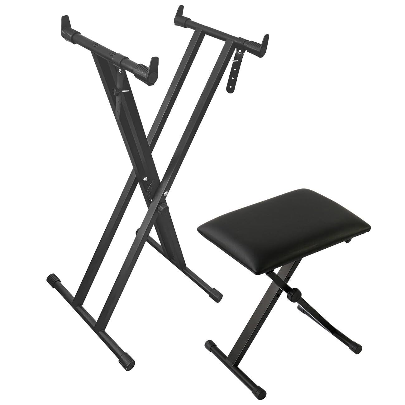 Longeye 電子ピアノスタンド 椅子 セット キーボード ピアノ スタンド ベンチ 折りたたみ式 X型 高さ調整可能 88鍵盤 61鍵盤 コンパクト 収納 黒セット