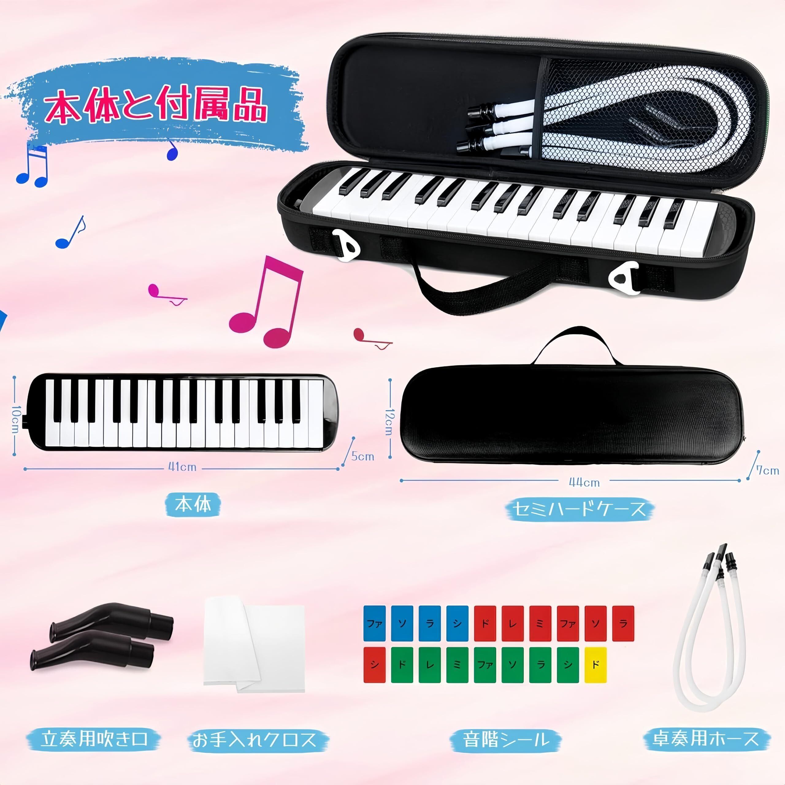 OMATA 鍵盤ハーモニカ 32鍵 メロディピアノ 小学生 小学校 こども用 軽量本体 通学に優しいセミハードケース+ホース+唄口 (ドレミ表記シール・クロス・お名前シール・ホースと吹き口シール付き)