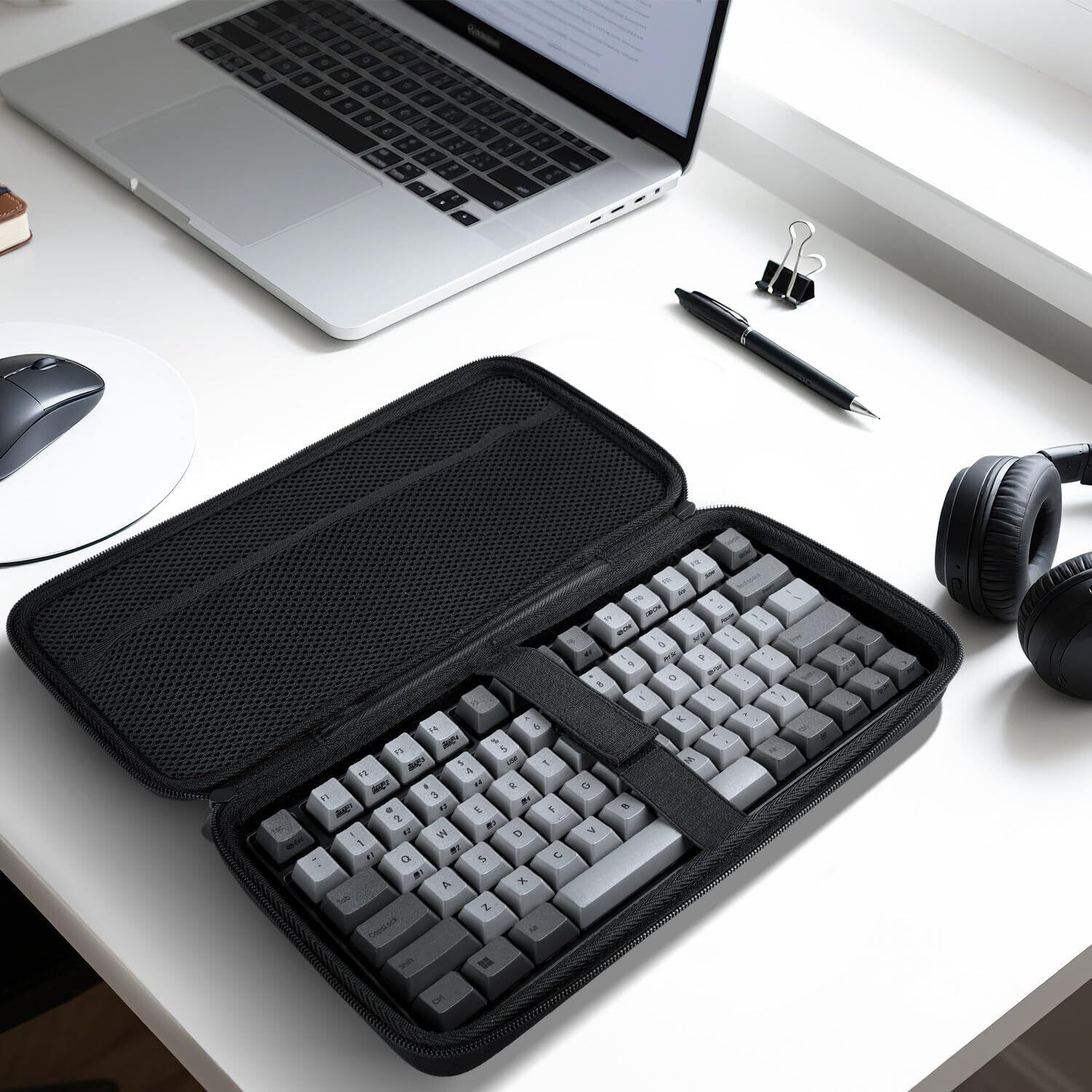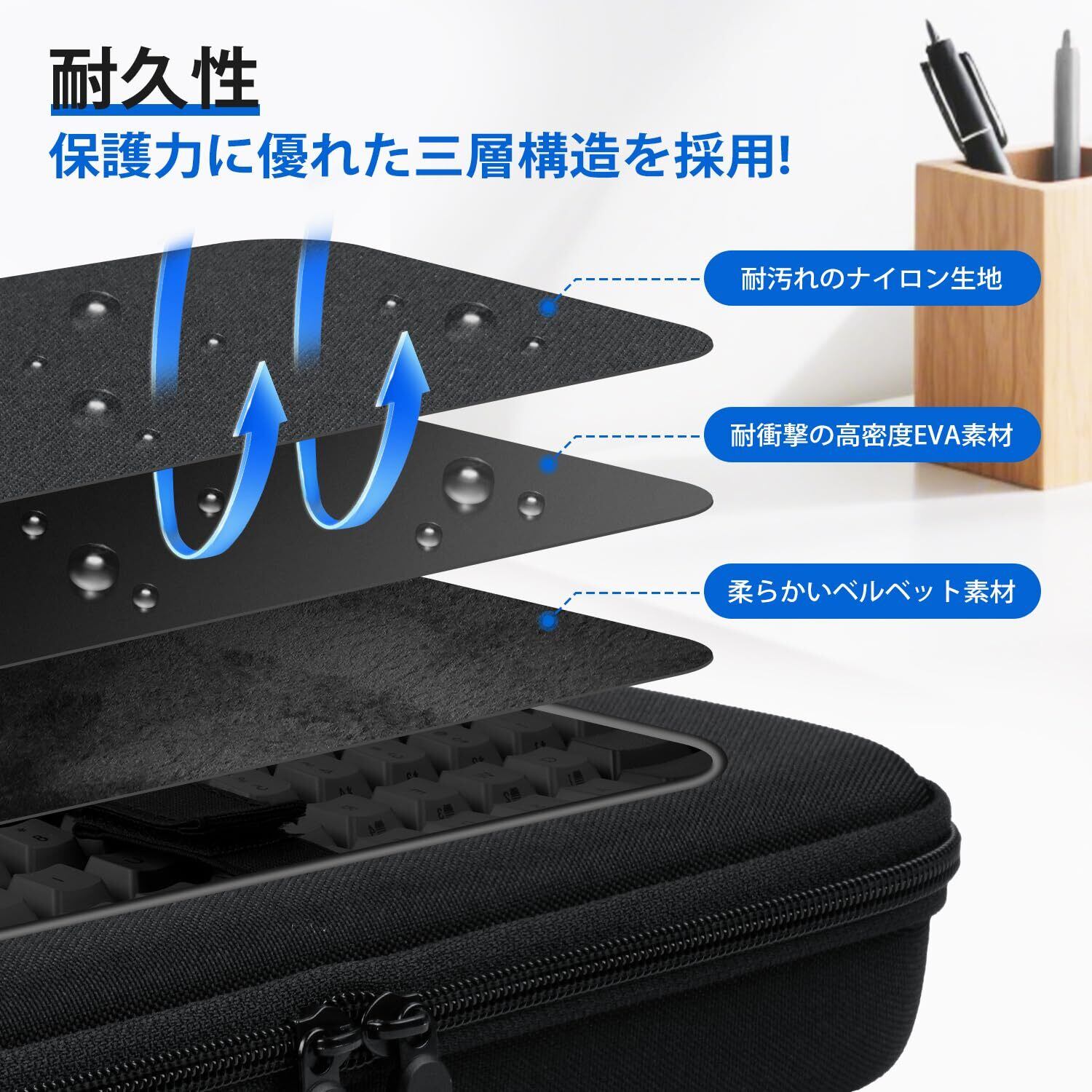 ACE LIGHTING REALFORCE RC1専用 収納ケース C1HJ13/C1HK13対応 リアルフォース キーボード ケース 70% 82キー 日本語/英語配列 適用 RC1 CASE 持ち運び メッシュポケット付 小物簡単収納&落下防止 EVA耐衝撃構造 耐久性(ブラック)